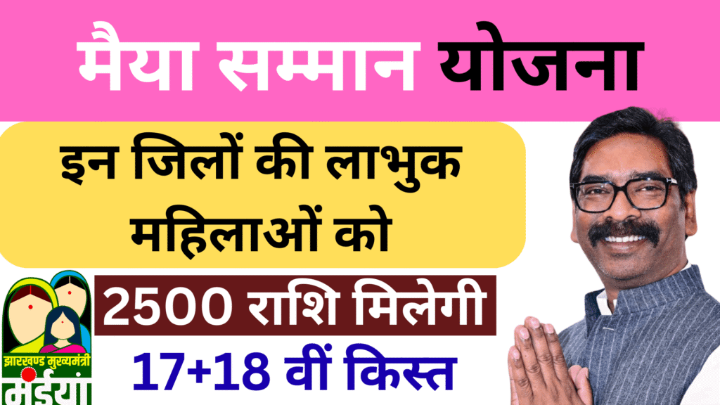 मैया सम्मान योजना में अभी तक सभी लाभुक महिलाओं के बैंक खाते में 16 वीं किस्त तक का भुगतान हुआ है मगर कई जिलों में 19वीं किस्त की राशि मिली है हाल ही में रांची जिले के सभी लाभुक महिलाओं के बैंक खाते में 19वीं किस्त की राशि ₹2500 होली के अवसर पर ट्रांसफर की थी मगर कुछ जिलों में अभी भी 17वीं किस्त की राशि से लेकर 19वीं किस्त की राशि तक का भुगतान नहीं मिला इस के बारे में पूरी जानकारी लेते हैं।Maiya Samman Yojana Chatra District 17th &18th Installment Update
